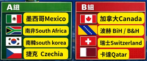 這屆 2026 FIFA 美加墨世界盃 A、B 兩組強弱分布相對明朗,但「主場優勢」與「戰術紀律」將是核心。